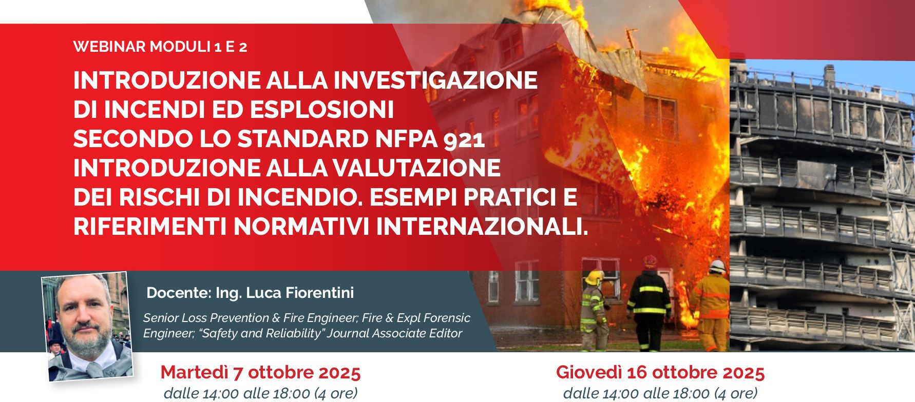e tenuti da Luca Fiorentini (Senior Loss Prevention & Fire Engineer; Fire & Expl Forensic Engineer; “Safety and Reliability” Journal Associate Editor).